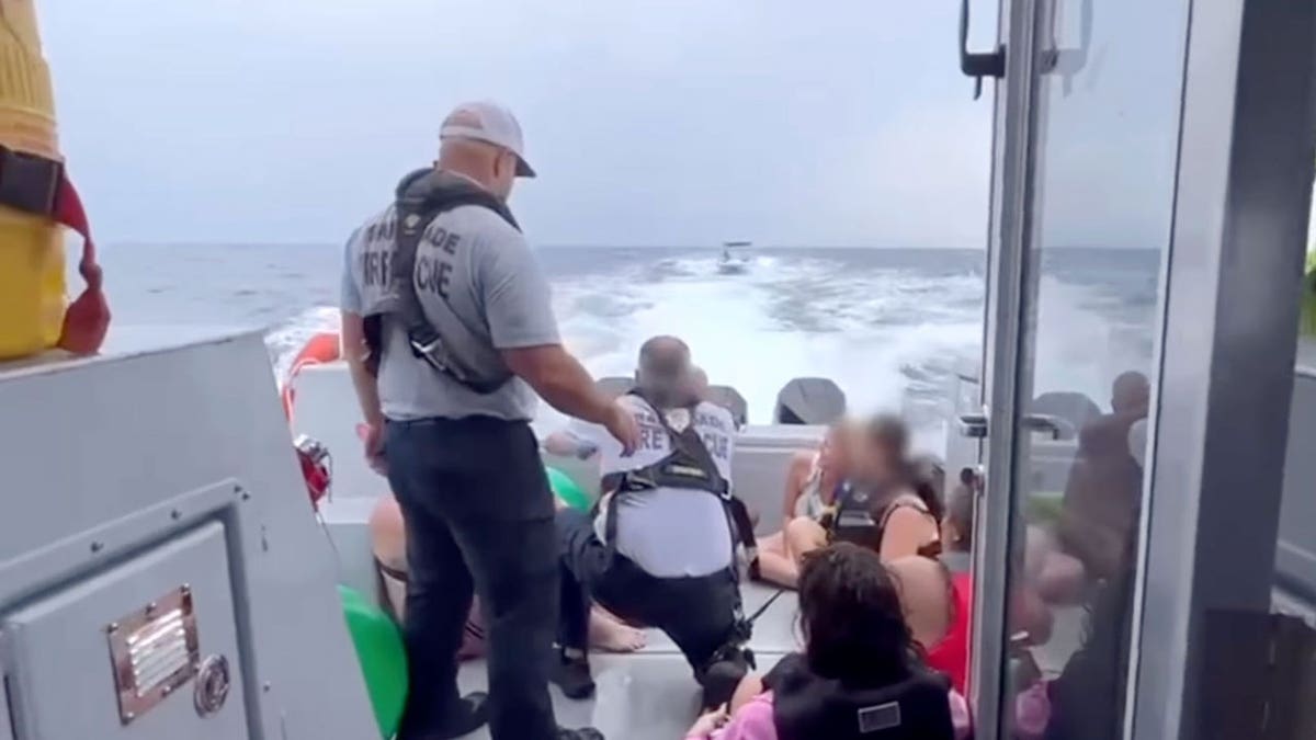 The video shows the choppy waters as first responders assist the distressed passengers. All passengers were safely brought back to shore with no reported injuries.