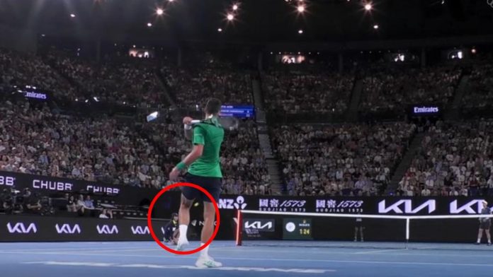 Novak Djokovic has come within a whisker of an instant disqualification during his third-round win over Botic van de Zandschulp at the Australian Open.